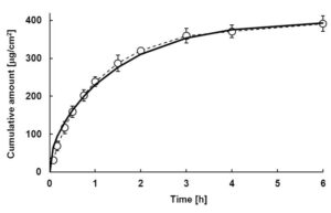 in vitro試験(皮膚透過試験・放出試験)と in silico解析(SKIN-CADシミュレーション)を組み合わせた評価例です.